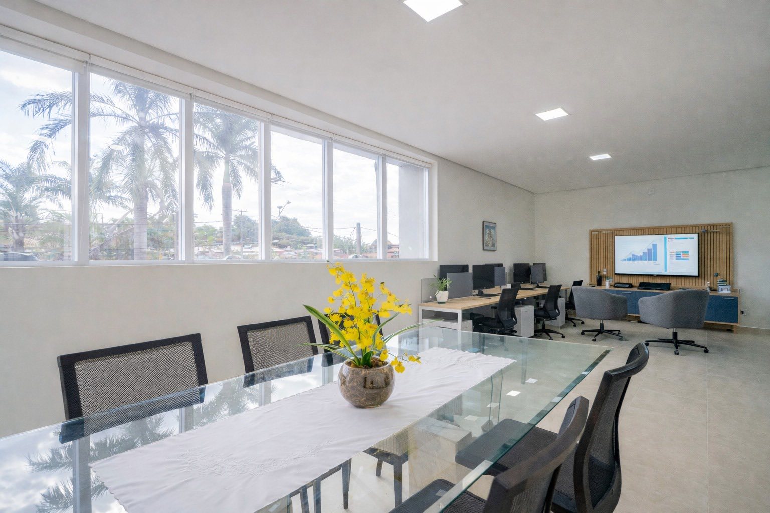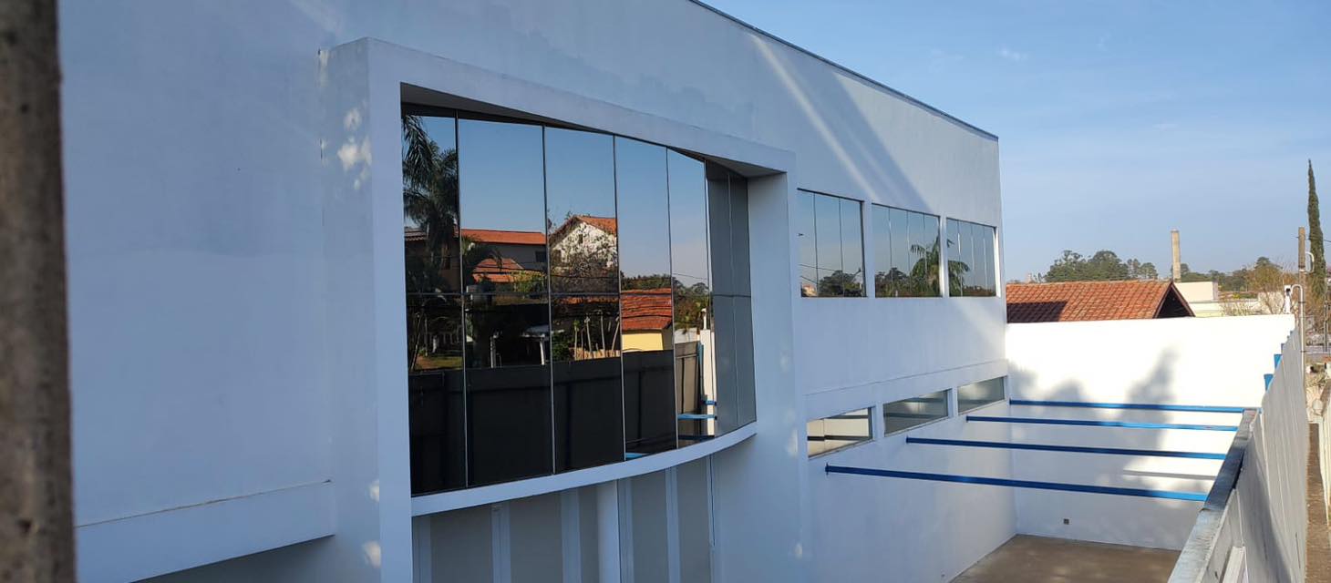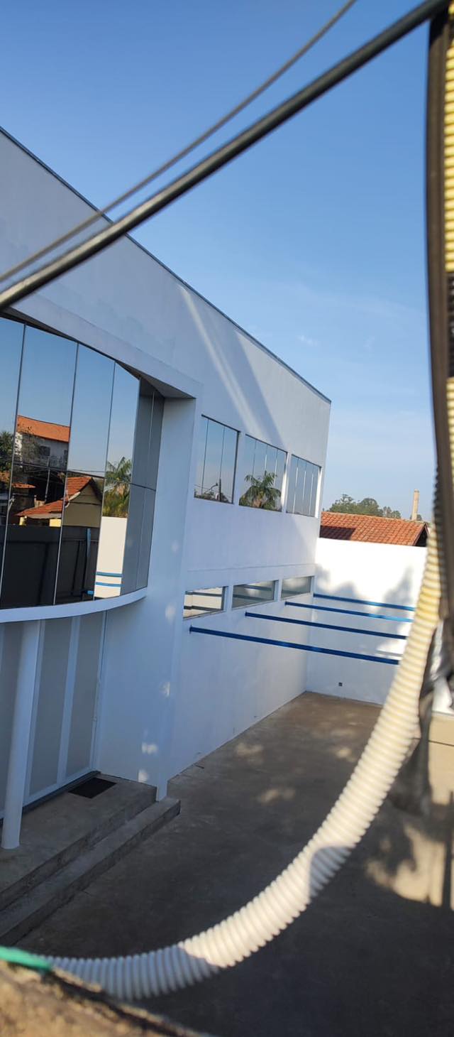 Escritório superior: 5 salas das quais 3 com ar condicionado. 1 lavado. 2 banheiros sendo 1 banheiro privativo de uma sala. 1 cozinha e 1 área de serviço com sacada 1,20 x 20,00 ml para o galpão.